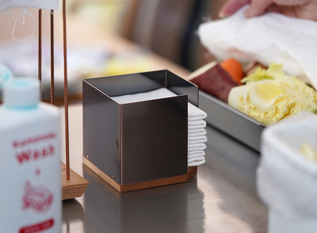 手ぬぐいのように風合いがよく滑らかな肌ざわりの和晒は、濡れた手をさっと拭くのに。また、まな板や包丁など調理器具の水気を拭き取る布巾としても活躍します。
