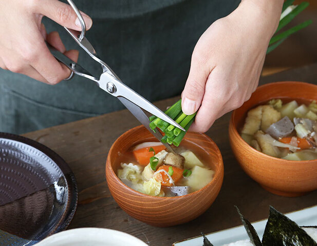まな板を出すほどでもない、お味噌汁やお料理のトッピングを切りたいときに。青ネギや大葉、刻み海苔など簡単に細切りができます。