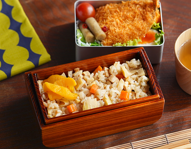 適度な吸湿作用があるため、ご飯がべとつかず、お弁当を食べたときにかすかに感じる木の香も楽しむことができ、檜材と漆の持つ天然の抗菌作用がごはんやおかずを新鮮に保ってくれます。