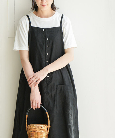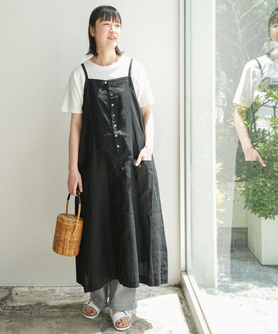 TUTIE.|【Xmas早割】【RINコラボ】リネン染色ドライフラワープリントエプロンワンピース / クリスマスギフト