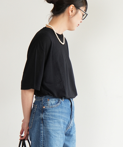 BLUE LAKE MARKET|アメリカンドライ天竺2 0.3cmピッチヘムラウンドボーダープルオーバー Tシャツ カットソー