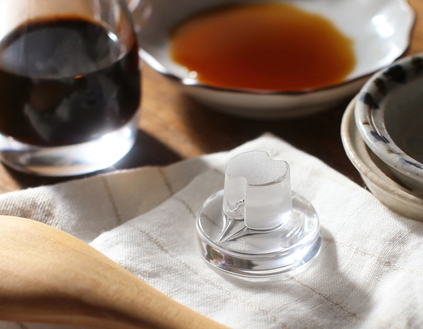 パーツは全てガラス製。純度の高いクリスタルガラスが使われてるのでその輝きは美しく、ガラスの透明感で中の醤油をより美味しそうに見せてくれます。
