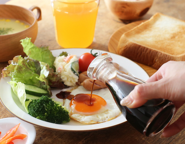 傾けた醤油差しを戻す時に一瞬垂れそうに見えますが、垂れそうで垂れない。醤油がボトルに吸い込まれていくのが面白くて、何度も試してみたくなってしまいます。