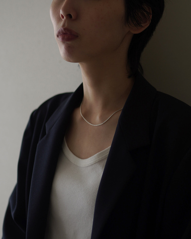 ミニマルでありながら確かな存在感を放ち、50cmの同アイテムと重ね付けもおすすめです。