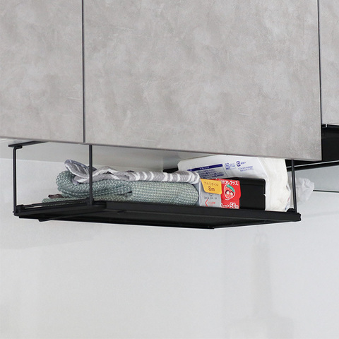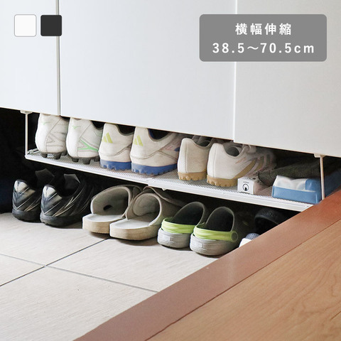 靴箱や洗面台、台所などの戸棚下に吊るすだけで新たな収納スペースが完成。散らばる靴や、定位置が決まらない物を置いてみると、すっきり空間が整います。