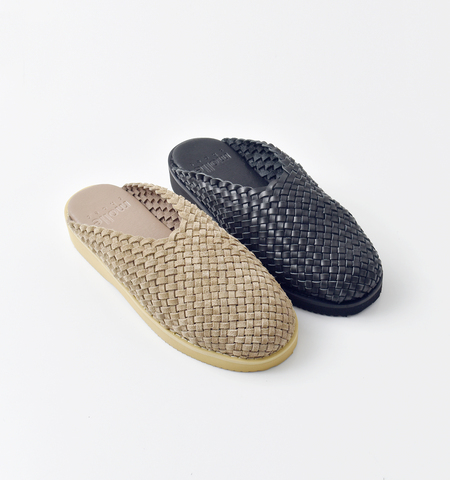 上質なレザーを職人の手で丁寧に編み込んだ、molle shoesの人気モデル「WOVEN LEATHER CROG」個性的な表情を持つ編み込みのレザーアッパーが足元に抜け感を与え、春夏のスタイリングにぴったりな1足。