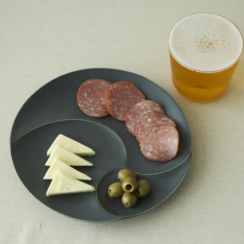 「tete」の仕切りプレートは、一般的な仕切り皿のイメージを払拭するような、ゆるやかで低めの仕切りが特徴のお皿です。嬉しいのは、仕切りの存在感が希薄なところ。仕切りを全て使わずとも、なんとなく様になる。使い勝手の良い大人なお皿です。