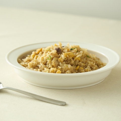 こちらは、2002年にグッドデザイン賞を受賞した、陶磁器デザイナーの森正洋氏が考案した器です。少し深さがあり、カレーやチャーハンの盛付けにぴったり。最大の特徴となるのは、そうしたメニューを「最後の一口」まで上手にすくえる「かえし」が付いていることです。
