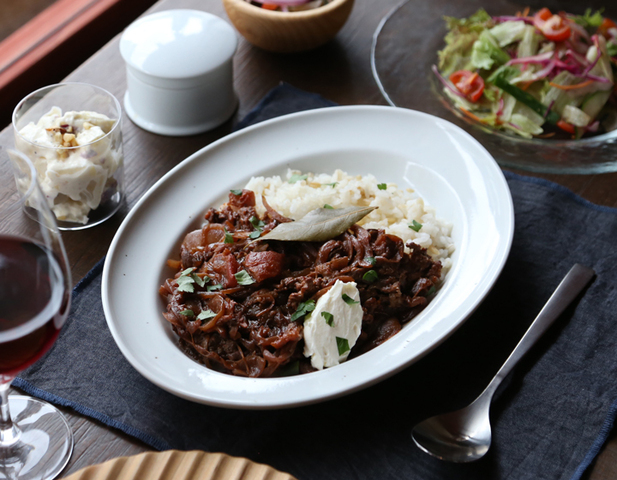 一人前のビーフストロガノフやカオマンガイなどを盛り付けるのにちょうどいい大きさで、柔らかな質感の白いお皿は、何をのせても恰好よくきまります。
