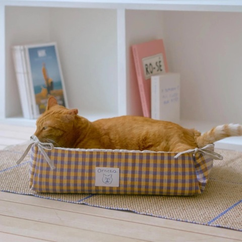 fogさんのリネン生地は可愛いだけでなく、このさらっとした質感に夢中になる猫も多いんです。形も素材も、猫ちゃんの「好き」がたくさん詰まった、とっておきのベッドになりました。