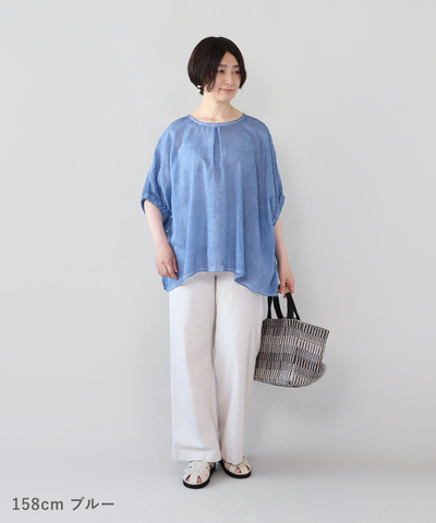 mumokuteki|ボタニカルレースの シャーリングブラウス