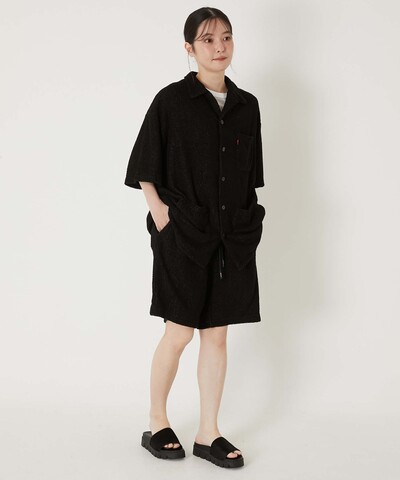 緩やかに身体から離れるリラックスしたシルエット。シンプルなデザインで素材の心地良さを感じられる一着となっています。