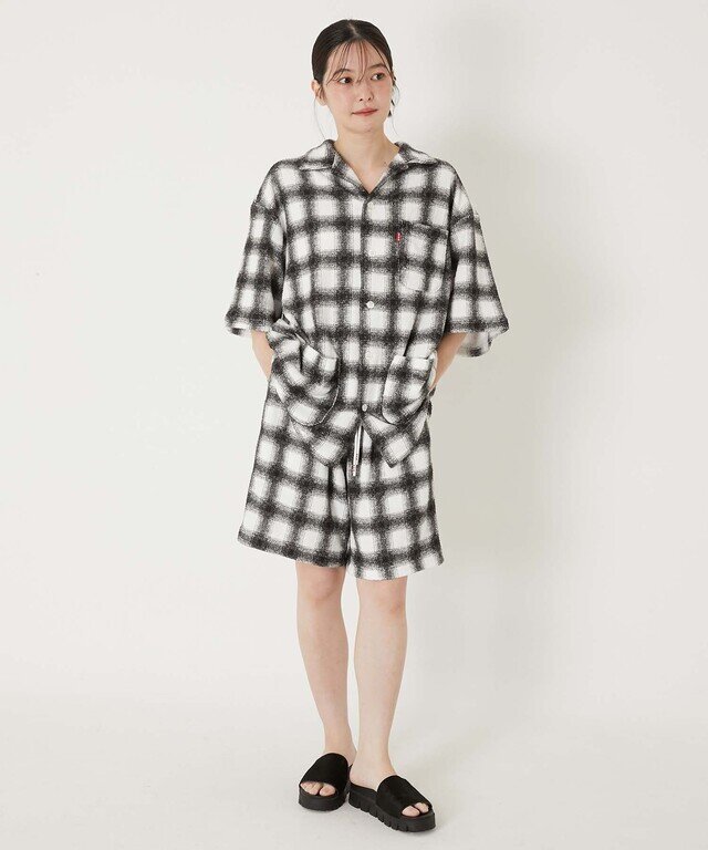 HOLLYWOOD RANCH MARKET|ピグメントプリント ダブルニットパイル イージーショーツ ショートパンツ チェック 日本製