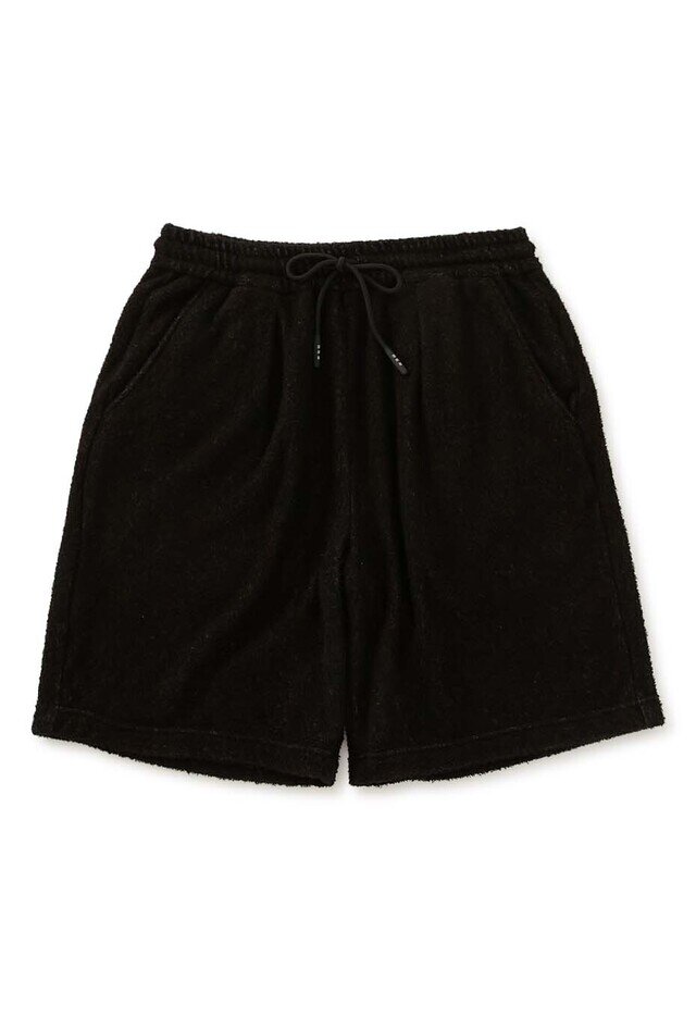 オリジナルチェック柄を顔料プリントしたパイル生地で仕立てたイージーショーツです。