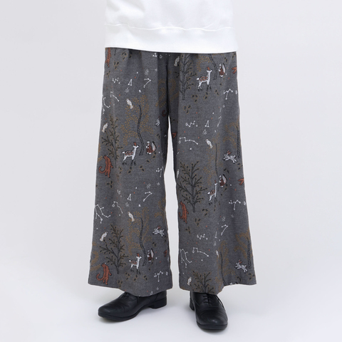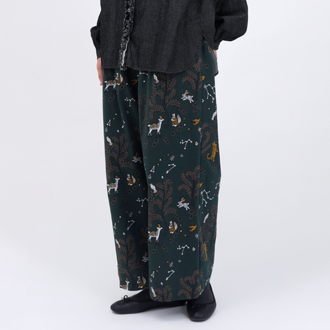 生地には「starry forest」と名付けられたテキスタイルを使用。しんと澄んだ冬の夜空の下に広がる原生の森が、マーブルならではの大らかな刺繍で描かれています。