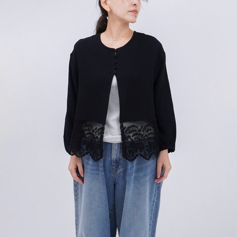 一枚でコーデを格上げ。裾のレースが印象的な2WAYボレロ