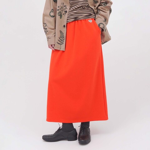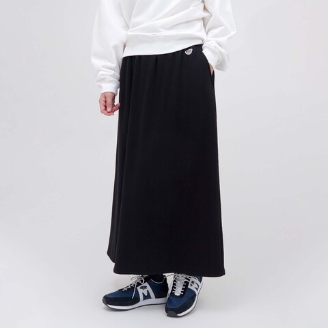 裏起毛のスウェット生地が肌に触れるたびに、やさしいぬくもりを感じるロングスカート。