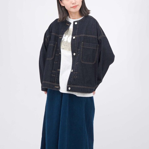 着回しやすいからロングシーズン活躍。ノーカラーのデニムジャケット。