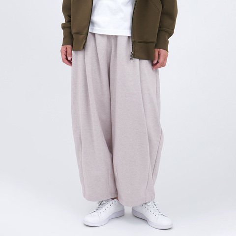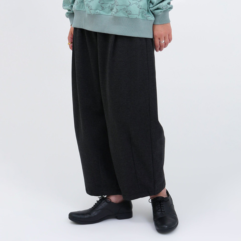 柔らかくストレッチの効いたあったか素材で仕立てたカーブパンツ。丸みのあるフォルムが体のラインを拾わず、ゆったりとした穿き心地を叶えます。