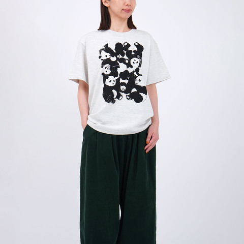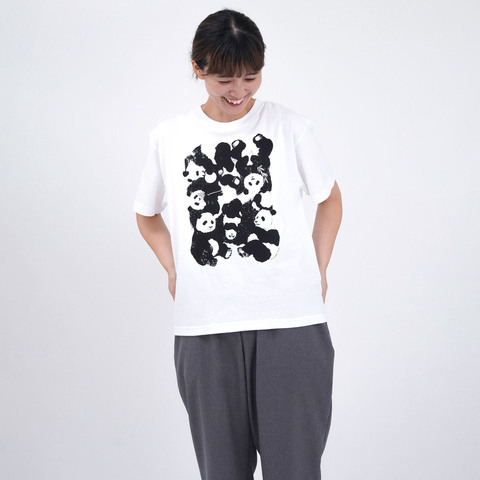 ぎゅっと集まったたくさんのパンダたちは、スタンプをぽんっと押したような、手描き風の表情がなんとも愛らしく、見ているだけで思わず頬がゆるみます。