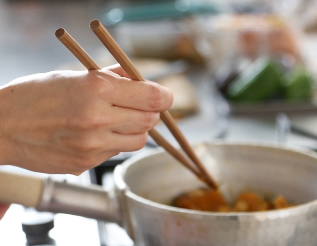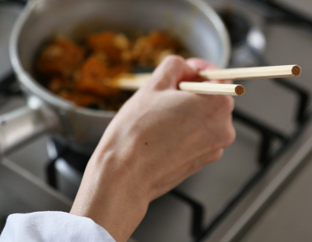出番や活躍の幅の広い菜箸は、煮る、焼く、炒める、揚げる、混ぜるなど、様々な工程で使われ、扱いやすくタフであることが大切。