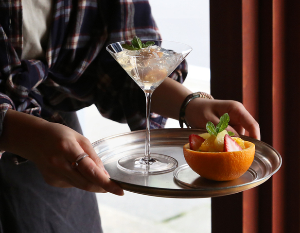 直径24cmで一般的なお盆よりも一回り小さいサイズ。グラス一つ載せただけでも見栄えのいいバランスで、グラスが引き立ちます。普通サイズのグラスだと4個ほどのせることができます。