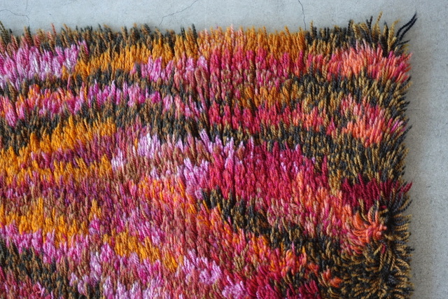 今回ご紹介となるヴィンテージラグは、色鮮やかな暖色カラーが目を引く一枚。