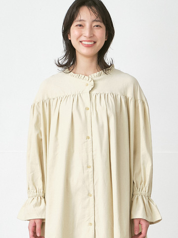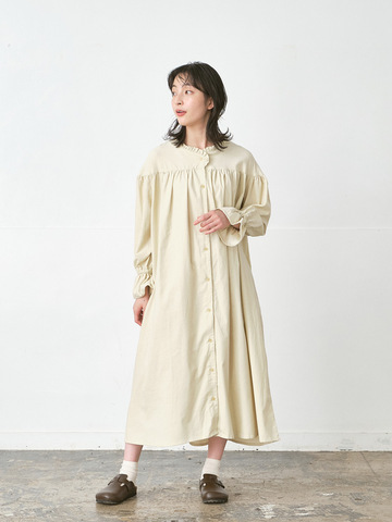 D*g*y|バンドカラーワンピース 綿ダンプバイオウォッシュ加工 D9652