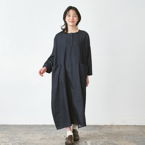 D*g*y|バンドカラーシャツワンピース ワンウォッシュデニム D6212