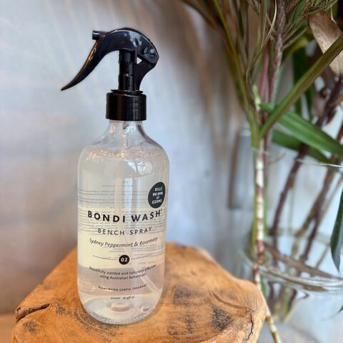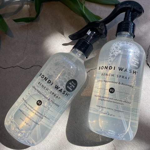 BONDI WASH(ボンダイウォッシュ)のベンチスプレーは、植物由来成分配合の、マルチにお使いいただけるお掃除スプレーです。スプレーしてササッと拭くだけで、キッチンやリビング、バスルームなどあらゆる場所の気になる汚れを落とせます。オーストラリアンブッシュオイルとエッセンシャルオイルの香りは、まるでアロマディフューザーを焚いたような、穏やかな香りは、お掃除をする時の気分をより心地よくさせてくれます。It's So Easyでは、お掃除にぴったりのな、シドニーペパーミント&ローズマリーのクリーンな香りをセレクトしています。