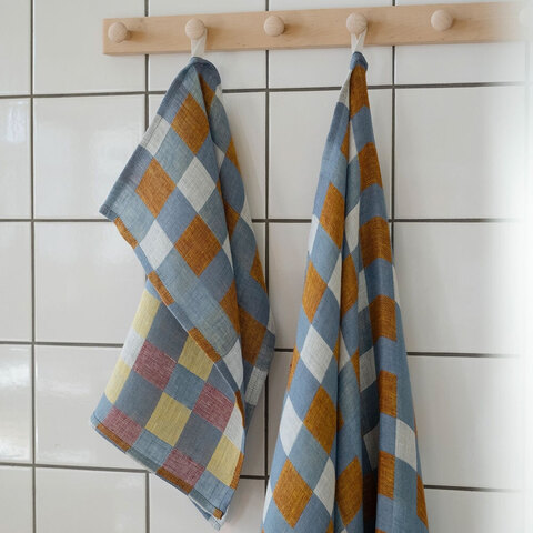 柔らかなリネンを使ったダブルジャガード織で、キッチンや洗面所、洗面所、旅行にもぴったりのタオルです。