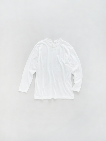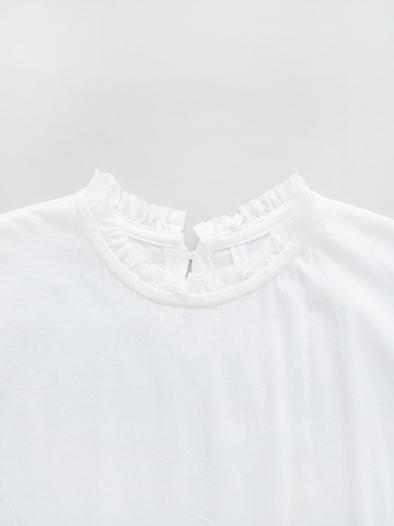 一枚ではもちろん、インナーとしても活躍するフリルネックTシャツです。