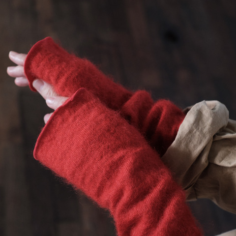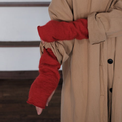モヘアに加え、ウールとシルクをブレンドした上質な指穴付きのアームウォーマー。