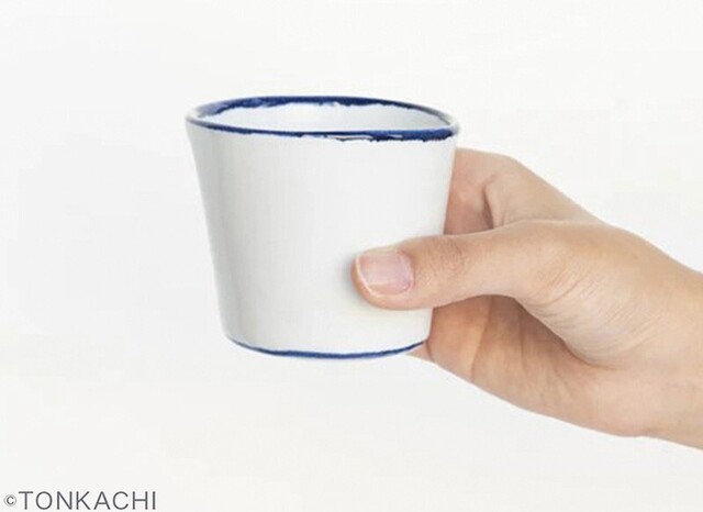 彼女のオリジナル作品 (マリアンヌ自身が全ての工程を仕上げている、いわゆる彼女の「そのまま」 が宿った作品)は、手描きの線のにじみやゆれ、そして少しゆがんだ成型と薄さが魅力。ただ、手作りゆえ一度に多くを作ることができず、みなさまに広くお届けすることができなかったのも事実でした。そこで、トンカチとマリアンヌがオリジナルのよさを極力残したうえでの量産化を模索し、出会ったのが、大正時代から続く愛知県瀬戸焼の窯元だったのです。