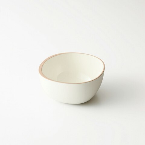 色合いや見た目は陶器や磁器のような高級感がありますが、実はプラスチック製。縁に工夫があり、誰が使っても最後の一口まできれいにすくえるのも特徴です。