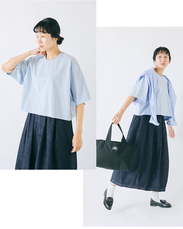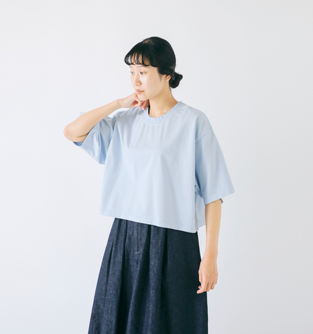 上質なオーストラリアコットンを使用した、肌あたりのやさしいショート丈プルオーバー。ふんわりとした風合いの天竺素材は、程よい厚みで透けにくく、ロングシーズン快適に着用いただけます。首元はすっきりとしたクルーネックで、詰まりすぎず程よい開きが顔まわりを上品な印象に。袖や裾はミニマルな仕立てで、どんなボトムともバランスよく合わせられる着丈です。シンプルなデザインながら、ユニヴァーサルセブンならではの丁寧なものづくりが光る1枚。ベーシックな中に、ちょっとしたこだわりが詰まったデイリーに嬉しいアイテムです。