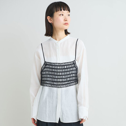 ブラウスやカットソー、ワンピースやオールインワン、様々なアイテムにレイヤードできるので、コーディネートの幅が広がります。