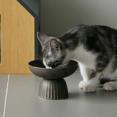 猫の食べやすさと、空間の美しさを両立する高台のうつわ