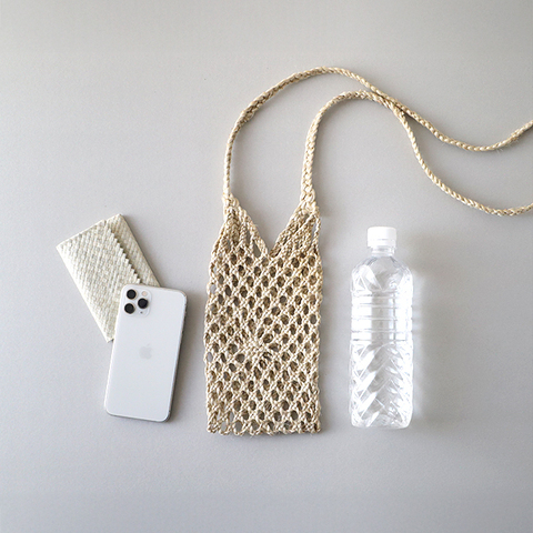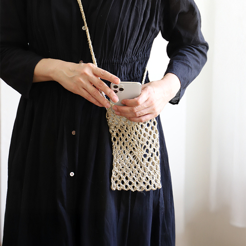 「お散歩をするときは、スマートフォンがあると心強いので持って出るようにしています。ジュートのホルダーなら、軽くて嵩張らず、両手を振って歩きやすいので、これくらいのシンプルさがちょうどいいですね。」