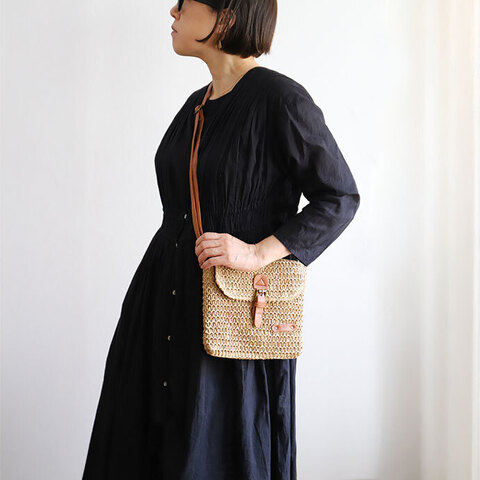 紐の長さを調整できるので、肩掛け、斜め掛けなどお好みのスタイルでお楽しみいただけます。