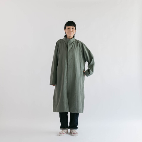 裏付きでありながら軽やかな印象の、シンプルなスタンドカラーコート。