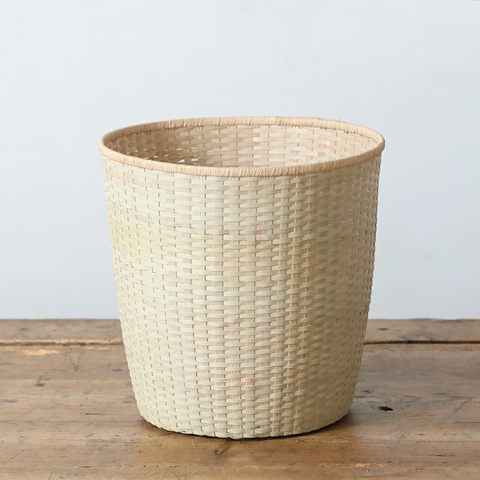 収納かごとしてはもちろん、鉢カバーにしても。用途色々、タビビトノキの葉を編んで作った使い勝手の良い丸底バスケット。