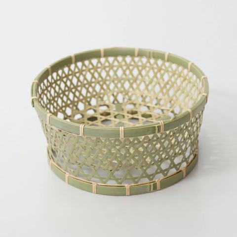 竹細工の基本の編み方の一つ「六つ目編み」で編まれた茶碗かご。