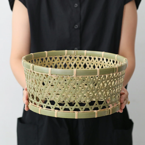 竹を手作業で一つ一つ丁寧に編んだ水切りかごは 見た目の美しさと機能性を兼ね備えた日本の手仕事が生んだ逸品。