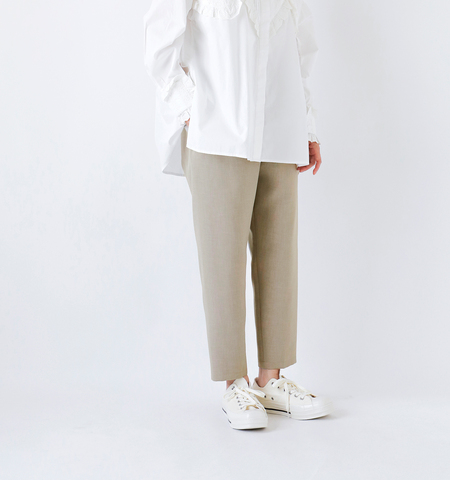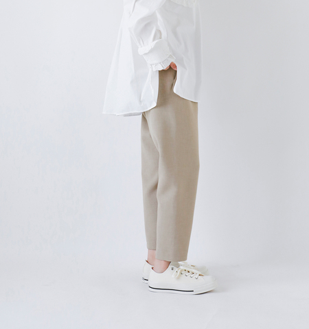 クリーンでモードな雰囲気の、仕立てが美しいテーパードパンツ