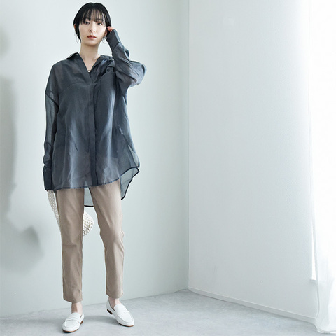 メランジ感のあるダークグレー。チャコールのような印象のカラーは、合わせやすさも◎です。普通の黒パンツに飽きた方に。