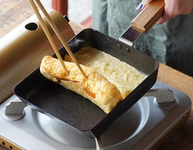 鉄の魅力を最大限に生かしつつ、特殊加工により素材の弱点を抑えて扱いやすくした玉子焼きフライパンは、長く使うほど愛着が持て手放せなくなります。