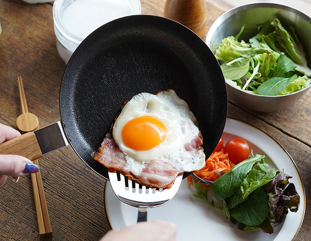 しかし、鉄製のフライパンはお手入れが大変だったり、焦げ付きやこびり付きなど、扱いが難しいイメージが。焦げ付きが心配で躊躇している方や、鉄のフライパンに慣れていない方でも安心して使えるのが、このambaiの卵焼きフライパンです。
