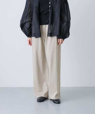ウエストにほんのりと寄せられたギャザーと、落ち感のあるシルエットが下半身をスッキリと演出。