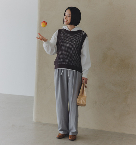 ブラウスやシャツと合わせてきれいめに、カットソーやニットと合わせてカジュアルにと、